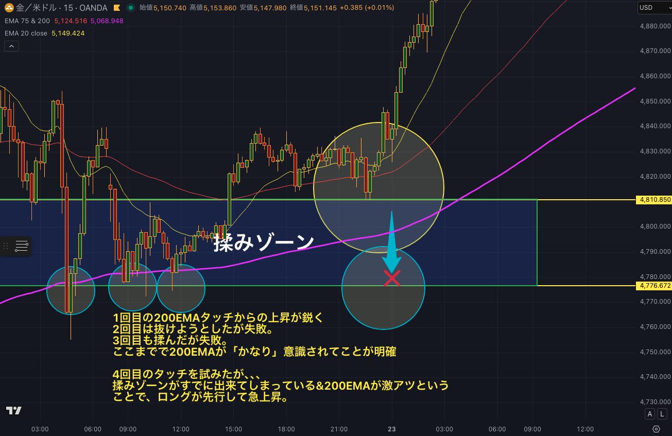 ※以下は200EMAに4回目のタッチはなかったものの、今回のパターンに該当します。(15分足)